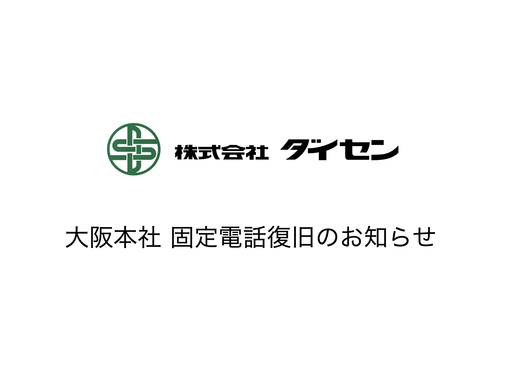 【お知らせ】大阪本社固定電話の復旧について(...